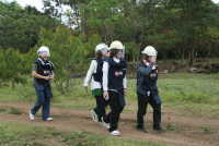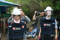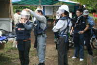 各自、防御服とヘルメットを