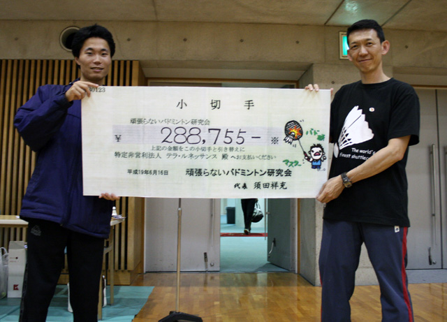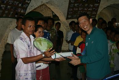 ピースフルチルドレンホーム2を訪問して バッタンバンに位置する孤児院「ピースフルチルドレンホーム2」 ここへの訪問が私にとっては今回のツアー参加の一番の目的でした。 2007年6月16日に大阪の「なみはやドーム」を貸しきって 【第一回チャリティバドミントン大会】を企画運営しました。 この大会を通じて集まった参加費や販売した商品などの売上金、 また全国のバドミントン愛好家の方々から寄付していただいたラケット などを直接カンボジアの現地の子どもに 手渡したいという私の思いがありました。 ![]() 実際に現地の孤児院を訪れ、寄付金とラケット64本、シャトル4ダース、 組み立て式バドミントンネットなどを手渡すことができました。 教室に集まってもらい贈呈式があり、お礼に子どもたちが日本語で 唄を歌ってくれました。 その後、外で子どもたちと一緒にバドミントンをしましたが、 これがびっくり! どうしてこんなに上手なんでしょう? 容赦なく降り注ぐ灼熱の太陽の下、夢中で子どもたちとガチンコ勝負で バドミントンを してしまいました。 どこからか 「須田さん、大人気ないで・・」 という言葉が聞こえてきたような・・・・(汗) 汗だくになって子どもたちと遊び、そして敷地の中を案内 してもらいました。 手作りの井戸、卵を産んだアヒル、生まれたばかりの子ヤギ・・・・ 一所懸命私たちに説明してくれました。 どの子どももキラキラときれいな眼をしていて、笑顔が素敵でした。 内戦で親を亡くした子ども、ストリートチルドレンだった子どもたち。 ここに引き取られて暮らし、なお自給自足で食べることで精一杯の 施設の子どもたち。 勉強をし、友達と遊び、スポーツを楽しむ。 日本では当たり前な生活です。 しかし今なお、この施設に継続的に支援してくれる先が 不足していると聞きます。 「次はいつここに来てくれるのか?」 孤児院のシスターに聞かれました。 「来年もう一度来ます」 シスターの口からその返事はありませんでした。 私には 「なぜ来年なのか?」 「なぜ来月じゃないのか?」 そう言いたかったように思えました。 私は、ここに何をしに来たのだろう。 私に出来ることは何だろう? ずっと考えてきました。 いまだに答えは見つかりません。 でもきっと私はあなたたちを忘れません。 これを機会に遠く日本からでも継続的に応援できる方法を探します。 日本にはたくさんの心温かい協力者もいます。 そしてきっと多くの人々が私の提案を聞き入れてくれるに 違いありません。 だから、待っていてくださいね。 これからもずっとずっとあなたたちを応援していきますから。 2007年10月 頑張らないバドミントン研究会 代表 須田祥充 |