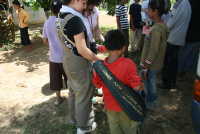 最後にこの施設「ピースフルチルドレンホーム2」の子どもたちの 中には、危険な目にあった子どももいることをお伝えします。 ここの子どもたちは、施設からそれぞれ学校へ通っているのですが、 登下校中に小さな子どもは誘拐され、国境を越えタイへ売り飛ばされる こともあるそうです。 売り飛ばされた先でどうなるのか? 売春、物乞い、花売りなどの労働をさせられたり、お金持ちの外国人が 小さな女の子を買っていることもあるということです。 そんな状況の中、学校への送迎の車を買いたいのですが、 今はその資金もないのが現状です。 継続的に資金援助してくれるドナーを探していると言っていました。 今の私にはとても満足のいくような支援は出来ませんが、来年もまた 大阪でバドミントンのチャリティ大会を企画したいと思います。 そしてその資金をここの子どもたちにまた届けたいなぁと考えます。 ちなみに今回の寄付金は、地雷撤去団体マグへ$2,400 ピースフルチルドレンホーム2へ$400 それぞれ割り振って寄付しました。 また今後共、私の扱うバドミントン用品の売り上げの中から 一定率の金額を毎月NGOを通じて寄付してまいります。 ここの施設で子どもたちと半日遊んで、心に残った出来事を最後に 紹介したいと思います。 ここの子どもたちは、とても人なつっこくて手をつなぎに来たり、 施設のあちこちを案内してくれたりしました。 でも、そんな中で他の子どものところへ話しに行くと、怒り出すのです。 分かります? この子たちは、親の愛情を受けて育ってきたわけではありません。 知らず知らずに、私たちを独占しようとするのです。 「私のお兄ちゃんだから」 「私だけのお姉ちゃんよ」 そんな感じなんです。 実際、ツアーの同行者の女性がこんなふうに言われました。 「私のお姉ちゃんになって」 意味分かりますよね。 あなた答えられますか? 「いいよ」って言えますか? やはりここでも答えの出ないまま施設を後にするほか無かったのです。 今回のカンボジアツアーの参加者は全員、帰国してから、NPO法人 テラ・ルネッサンスあてにレポートを提出する約束がありました。 この私の旅行記の最後にレポートを掲載します。 また、このような活動や平和教育に関心を持たれた方は、 テラ・ルネッサンスのホームページもご覧下さい。 NPO法人テラ・ルネッサンス そして全国の学校や地域で講演会も行われています。 講演会の様子を収録したDVDもありますので、一度ご覧になられるのも 良いかと思います。 ぼくは13歳 職業、兵士。』鬼丸昌也 セミナーDVD では、5日間に渡りご紹介してきましたカンボジアツアーの報告ページは これで終わります。 長い長いホームページを最後まで読んで頂きありがとうございました。 何かひとつでも心に残ったことがありましたら、是非お友達に、兄弟に 子どもに話をしてあげてください。 真実を知り伝えることが私たちが出来る一番手軽な支援です。 最後に私の提出したレポートを掲載し、筆を置こうと思います。 ありがとうございました。 頑張らないバドミントン研究会 代表 須田祥充 |