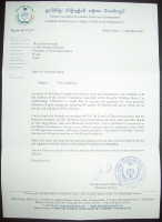 | 後日、施設の運営団体の クメール財団からNGOを通じて 私の手元に感謝状が届きました。 自慢じゃないけど英語が読めません ので翻訳していただきました。 |
